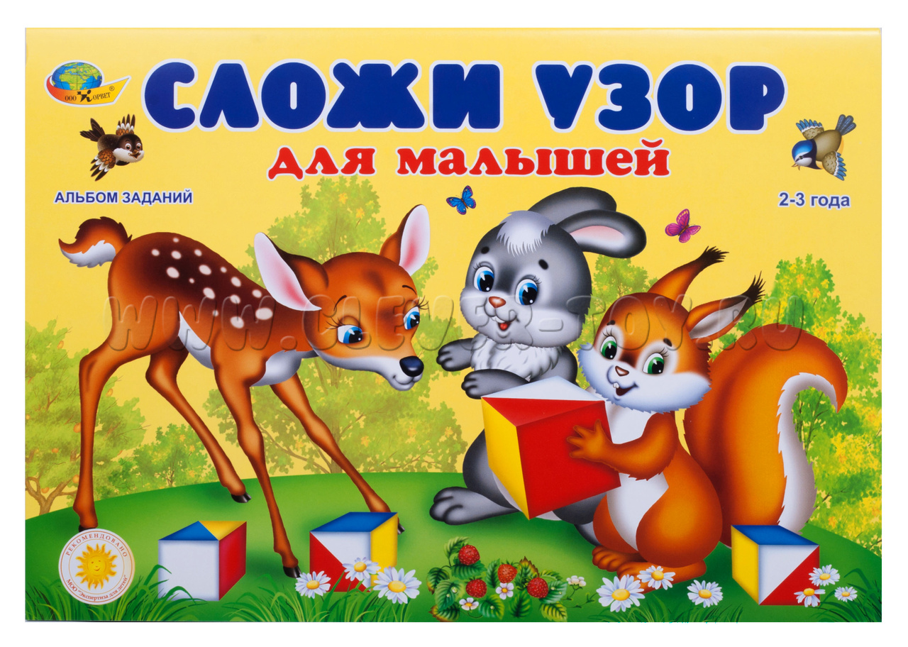 Альбом-игра "Сложи узор для малышей" предназначен для первоначального знакомства ребенка 2-3 лет с кубиками Никитина "Сложи узор".