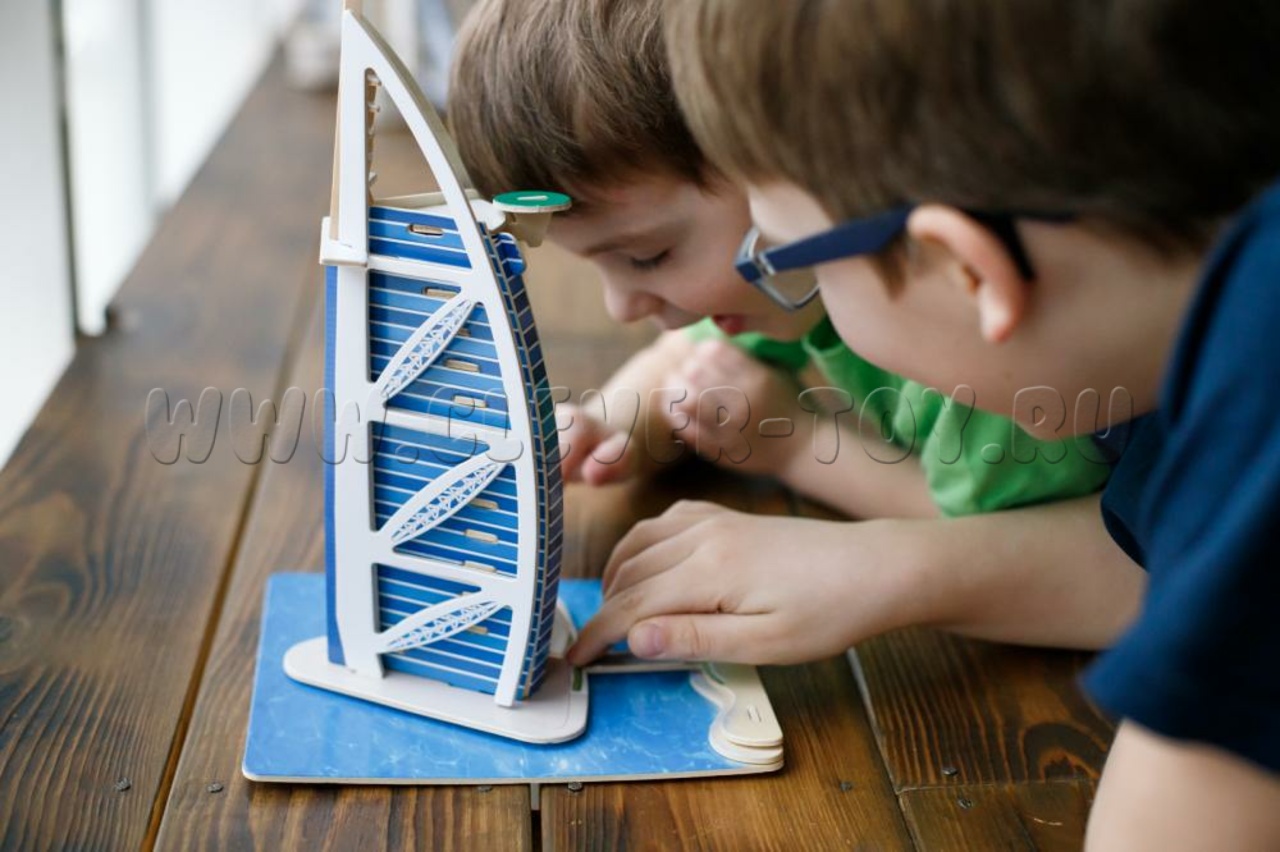 Пазл деревянный 3D. Отель Парус. Серия Достопримечательности мира. Размер 23,5*37,5 см.