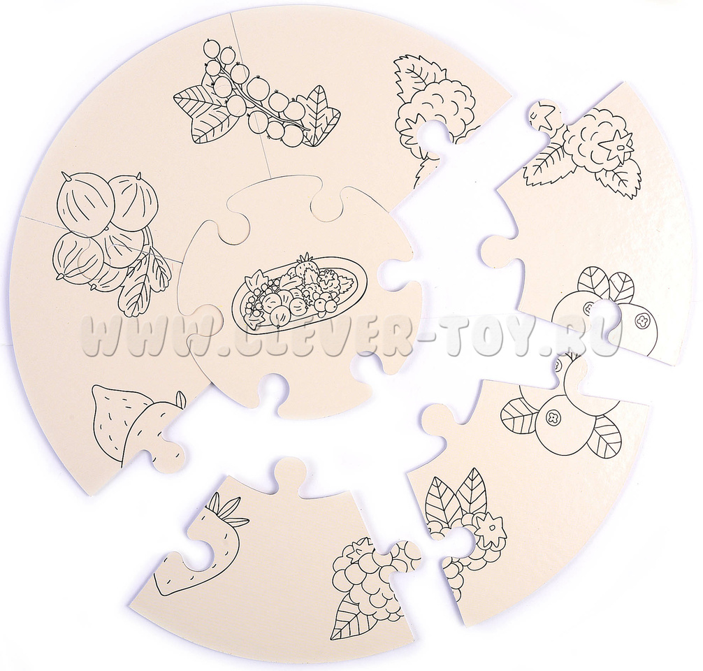 2. Игра с цветным фоном. На обратной стороне каждого пазла на цветном фоне вы найдете черно-белые контуры предметов, разделенные пополам. Предложите ребенку собрать круг в верном порядке (линии не должны прерываться, изображение должно получаться целым);