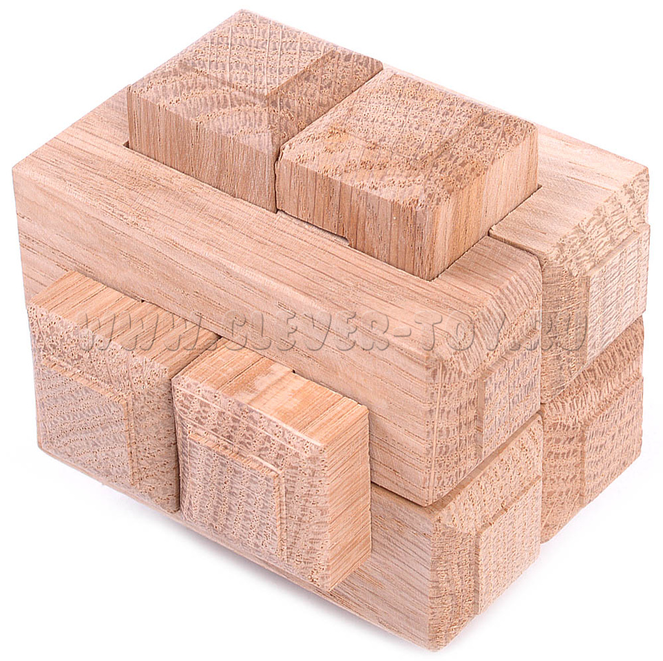 Попробуйте решить головоломку не прилагая к ней механических вмешательств. Выполнена из светлого отшлифованного дерева.