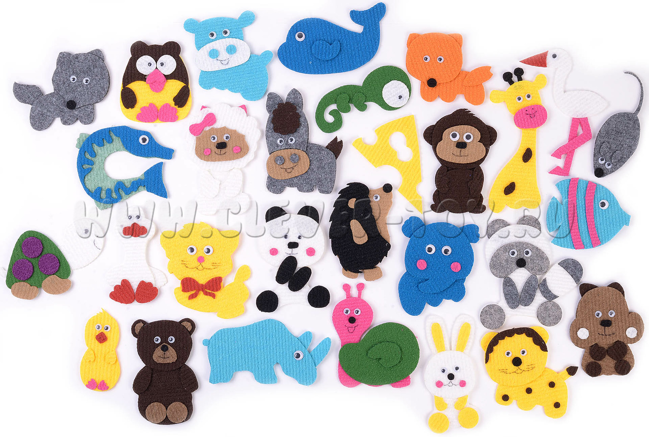 • Животные: бегемот, волк, енот, ёж, жираф, ишак, котик, лиса, медведь, носорог, овечка, панда, слон, тигр, хомяк, черепаха, шимпанзе, сыр с мышкой;