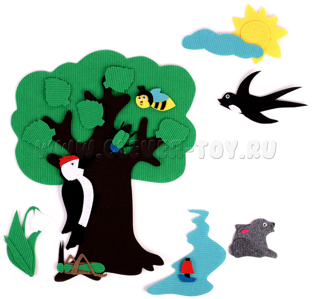 • растения – груша, яблоко, клубника, шиповник, крона жёлтая, крона зелёная, ствол дерева, листочки зелёные, красные, жёлтые, цветочки – 10 шт.;