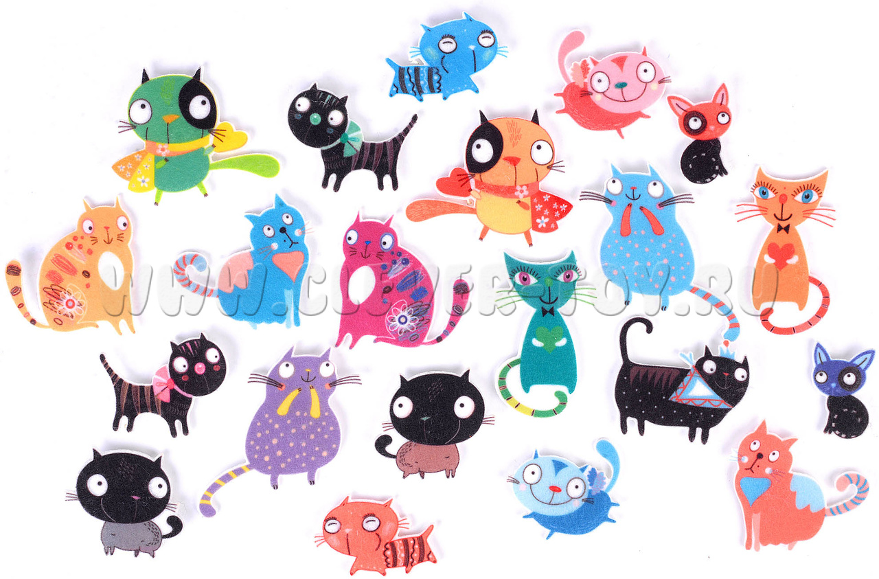 В ярком городке с цветными домиками живёт множество забавных котов, кошек и котят: