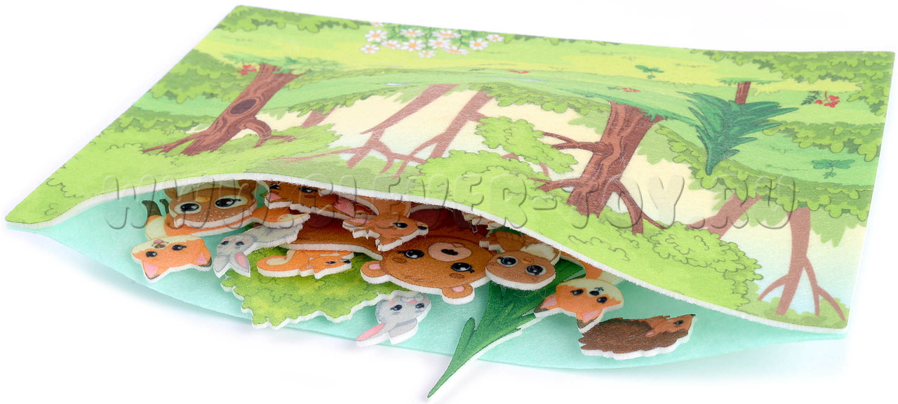 • Стимуляция воображения и творчества: Игровое поле с живописным лесом и мягкие фигурки лесных обитателей вдохновляют детей на создание собственных игровых сценариев и развитие творческого мышления.