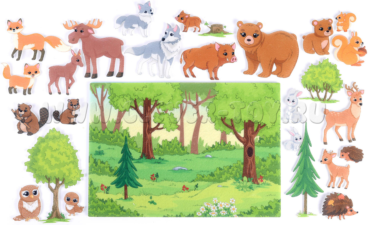 • Развитие знаний о природе: Набор позволяет детям узнать о разнообразных лесных животных, их внешнем виде и привычках, способствуя расширению их знаний о животном мире.