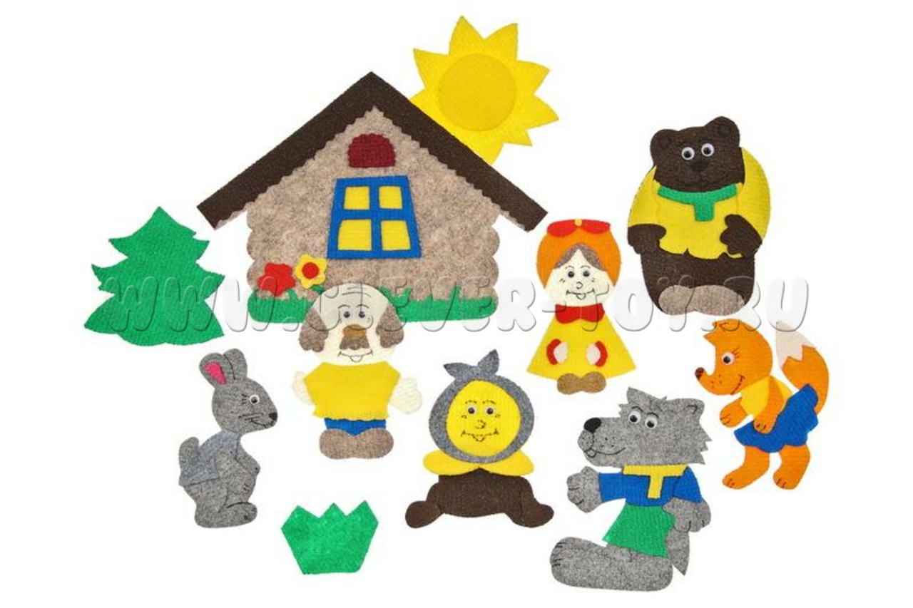 Герои сказки «Колобок» буквально оживают в руках вашего малыша. Ковролиновые герои сказки на липучках: