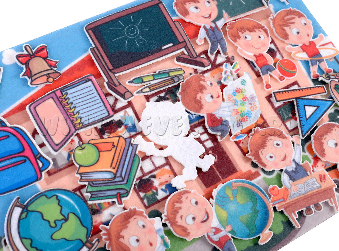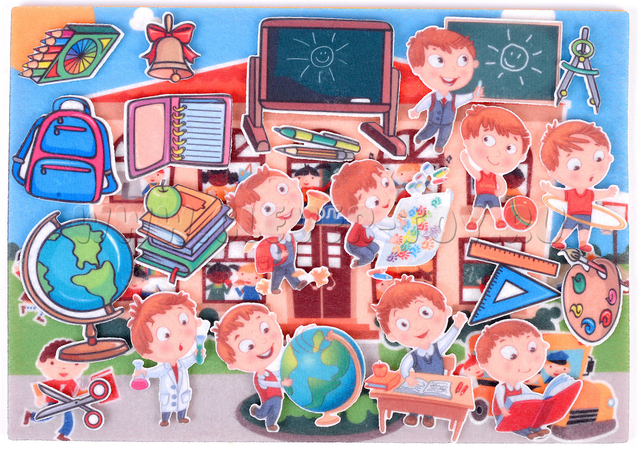 • придумывать сюжетно-ролевые игры на тему «Школа» с помощью фигурок на многоразовых липучках.
