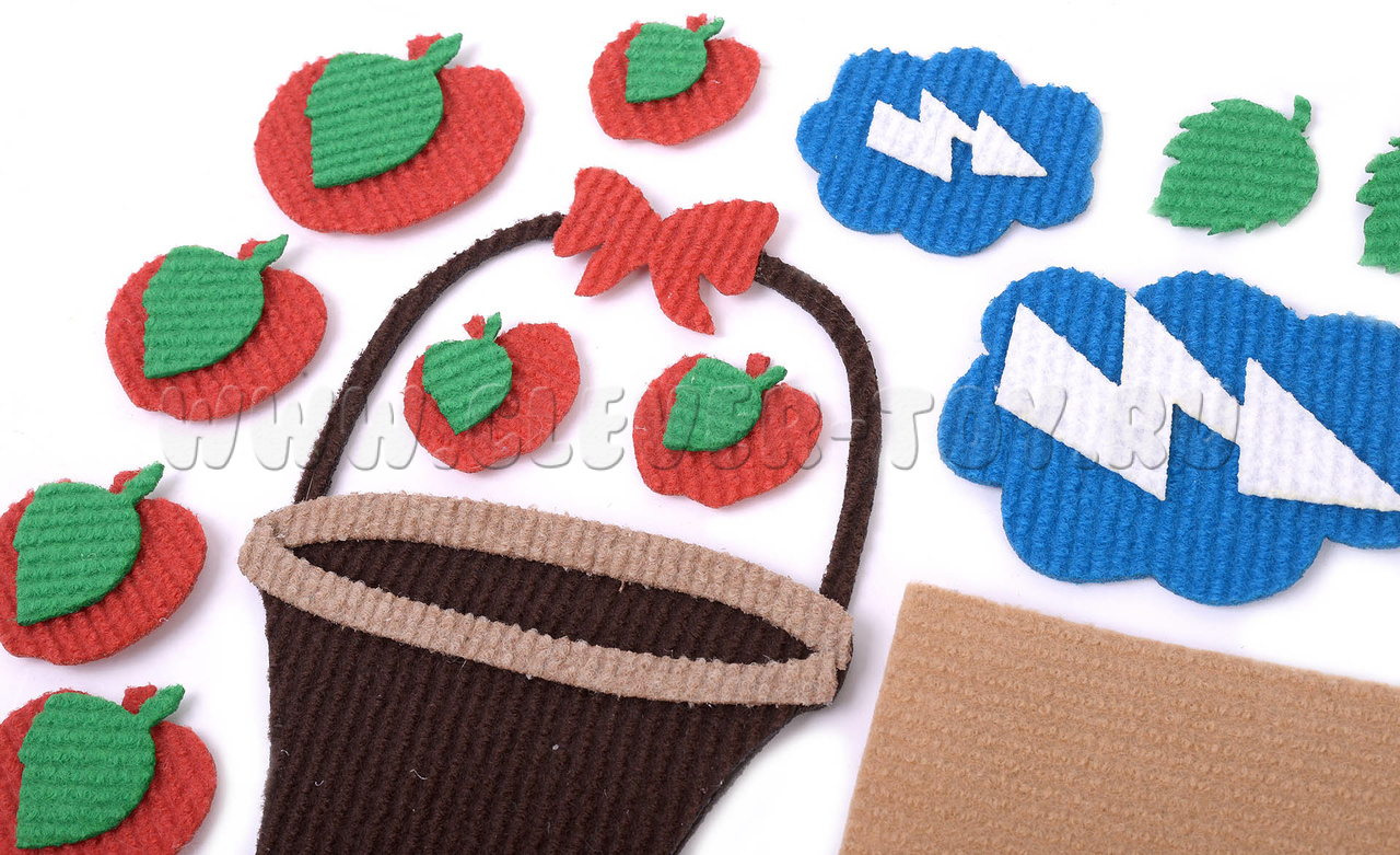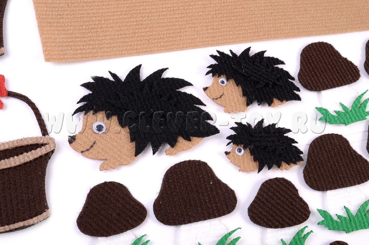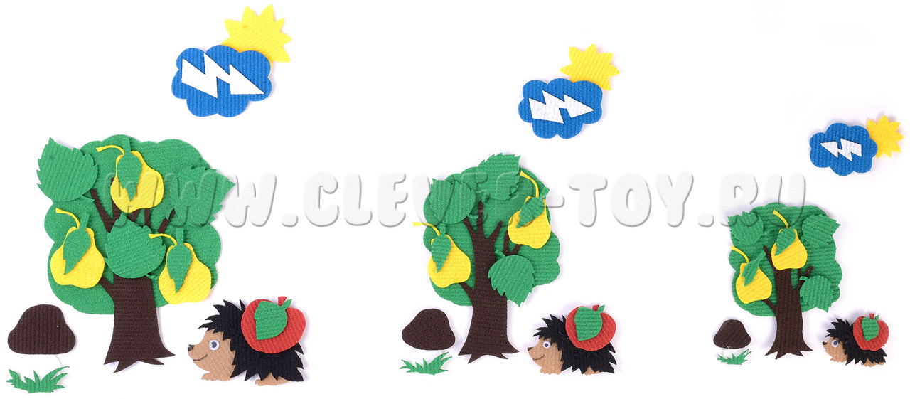 • дерево, солнышко, тучка с молнией, корзинка, ёжик маленького, среднего и большого размера (по три шт. каждого вида);