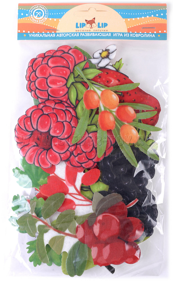 В комплекте 10 фигурок с изображениями ягод, на липучках.