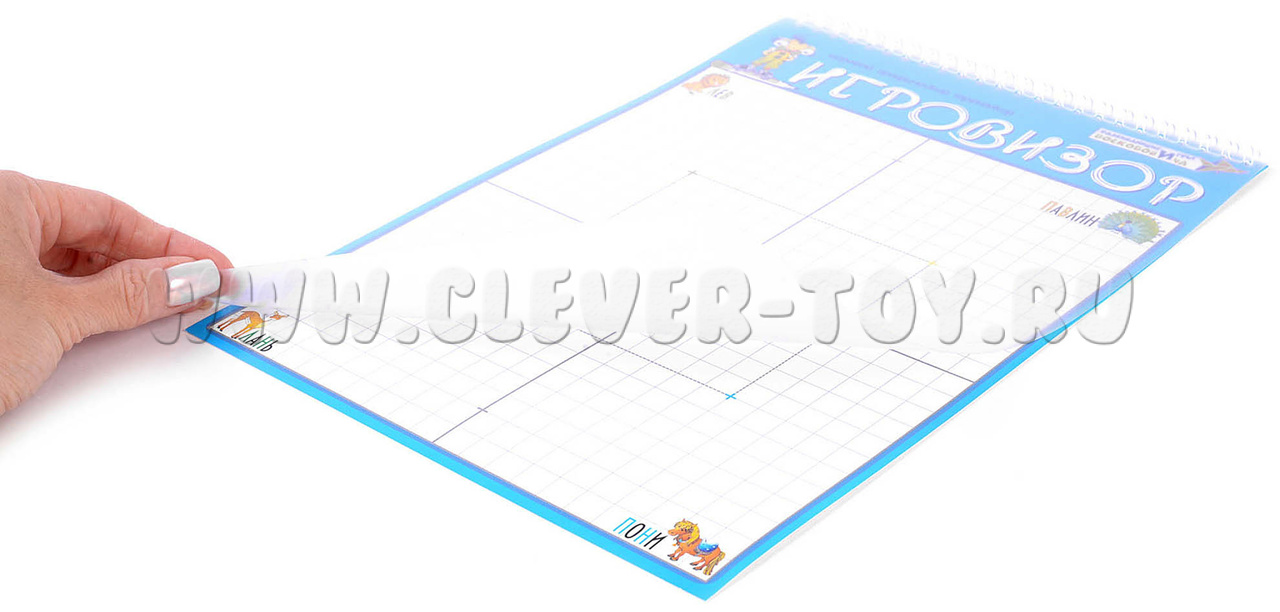 - Картонная основа (цв. печать, разлинована на клетки1х1см, формат А4), верхний лист матовый пластик на переплётной пружине - 1шт.;