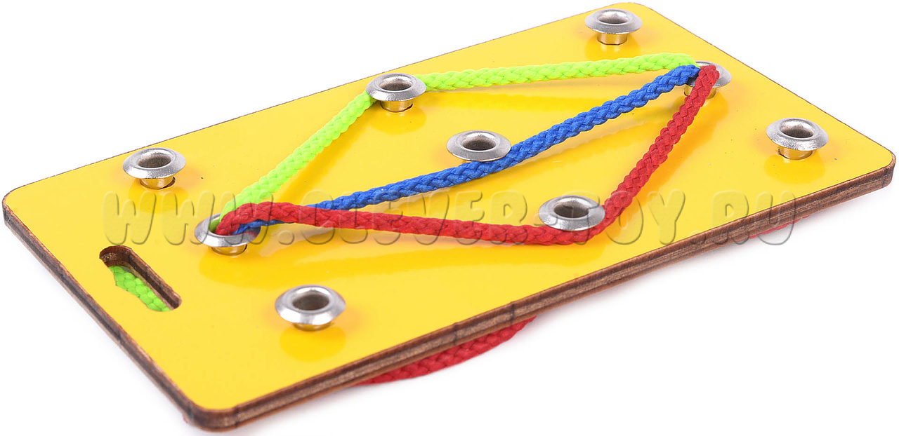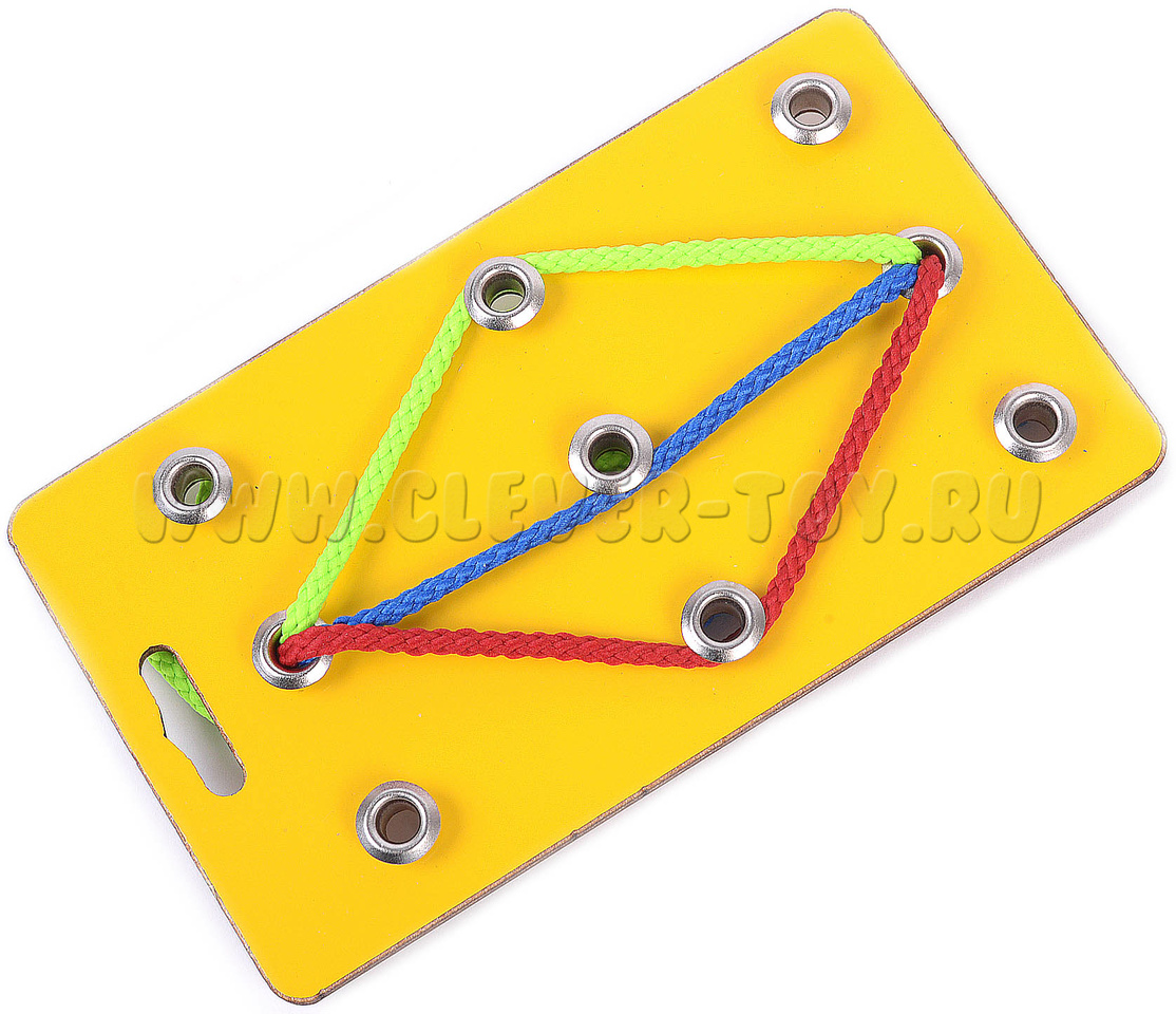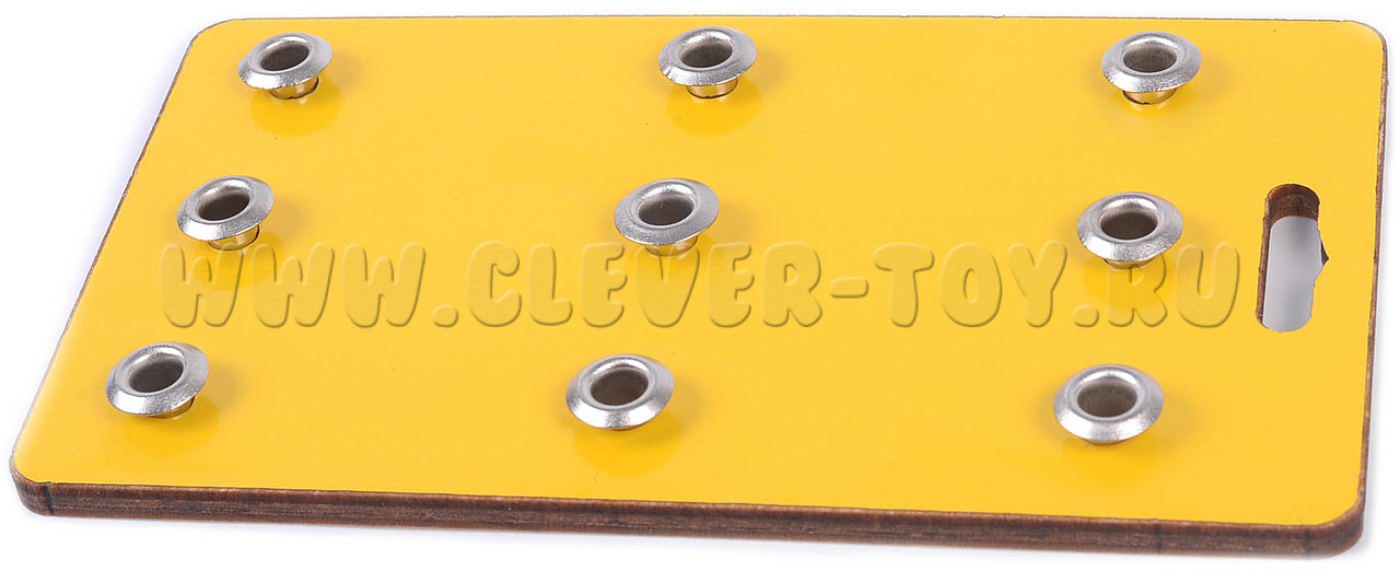 - игровое поле в виде яркой деревянной дощечки с 9 дырочками (кнопками), каждая обрамлена металлическим колечком для удобства продевания шнурков;