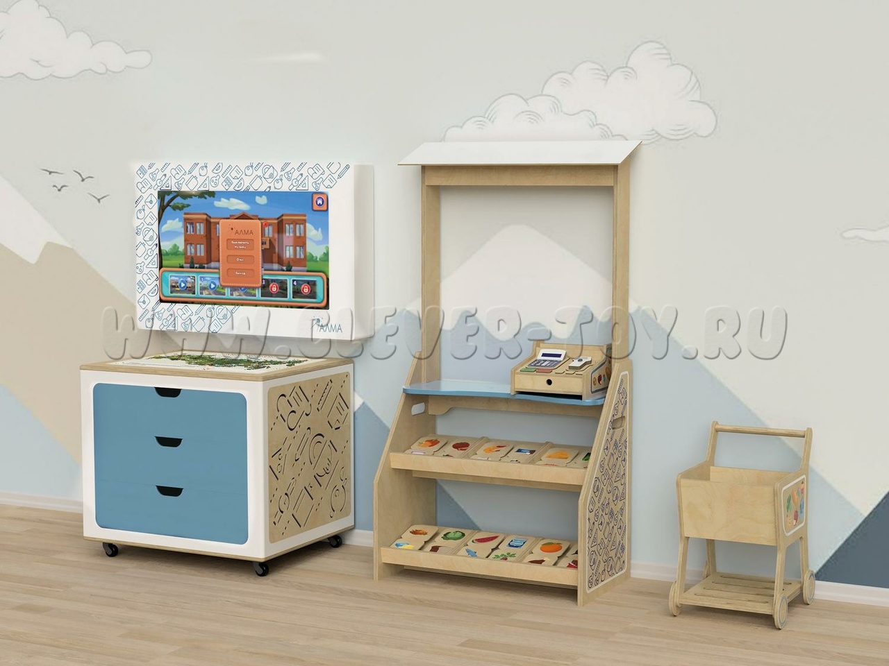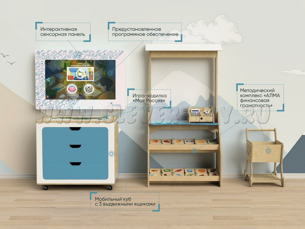Интерактивный комплекс для детских садов и дошкольных учреждений, который в игровой форме знакомит детей со знаниями в таких сферах, как: финансовая грамотность, экология, ПДД, космос и общие дошкольные знания. Развивает логическое мышление, воображение, концентрацию внимания и память.