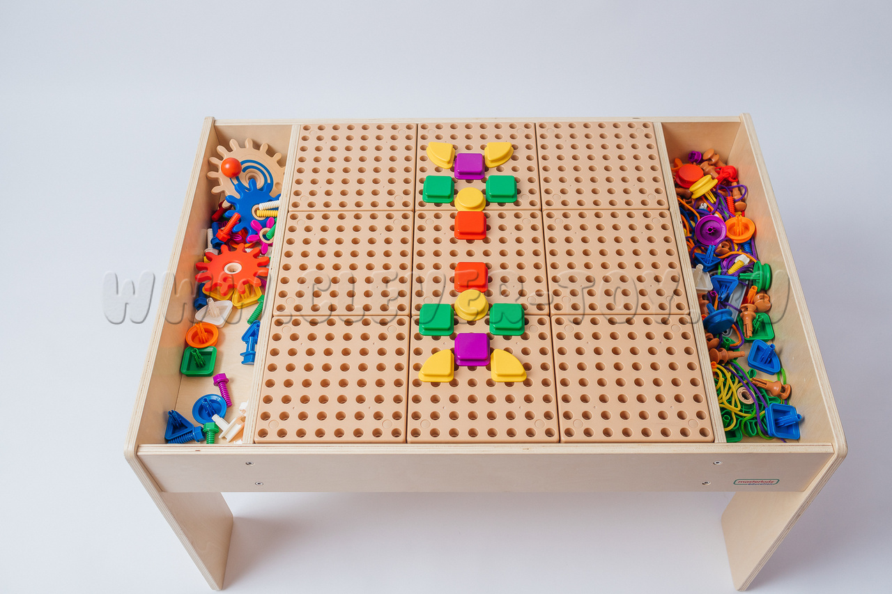 Конструкция стола - удобный формат работ для детей, можно комфортно сидеть и спокойно выполнять задания или просто играть.