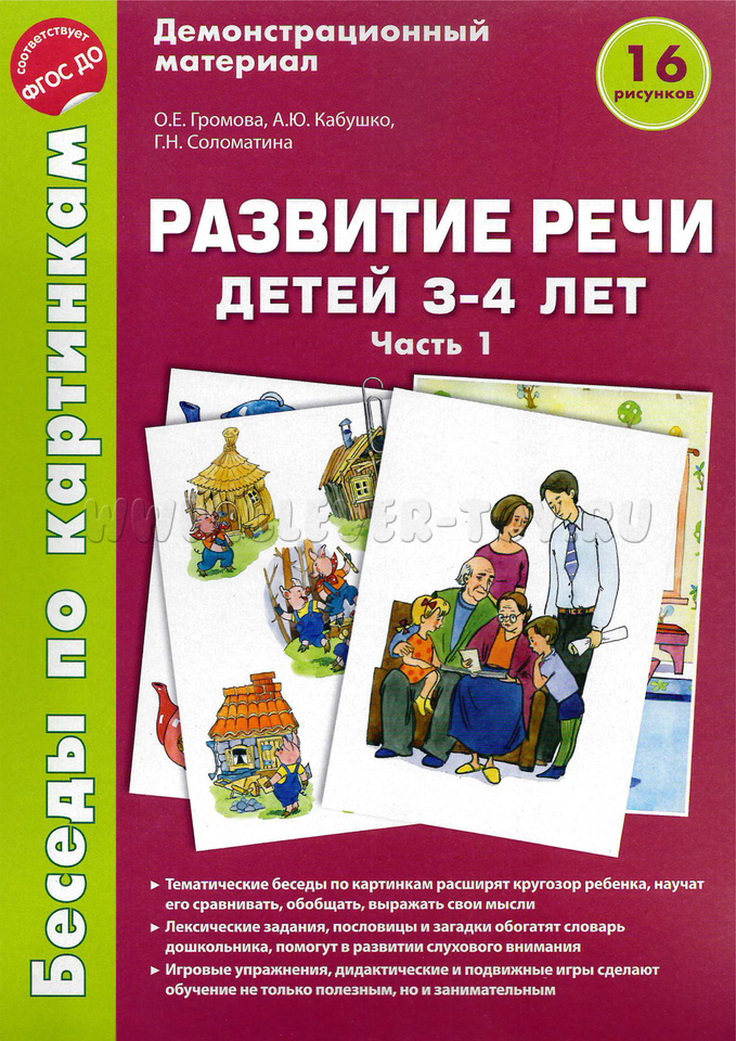 Тематические беседы по картинкам расширят кругозор ребенка, научат его сравнивать, обобщать, выражать свои мысли. Лексические задания, пословицы и загадки обогатят словарь дошкольника, помогут в развитии слухового внимания. Игровые упражнения, дидактические и подвижные игры сделают обучение не только полезным, но и занимательным.