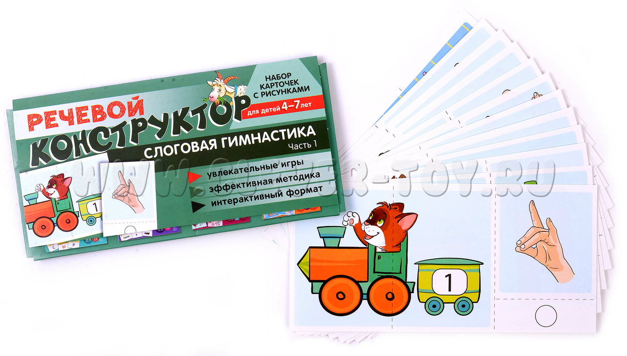 "Речевой конструктор. Слоговая гимнастика. Часть 1" - это комплект из 12 листов, включающих 34 карточки и 5 игр.