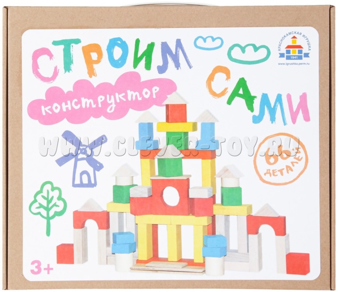Конструктор деревянный окрашенный (66 деталей)