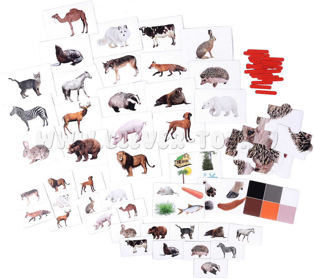 - 20 карточек с животными (50 мм х 90 мм): раздаточный материал;