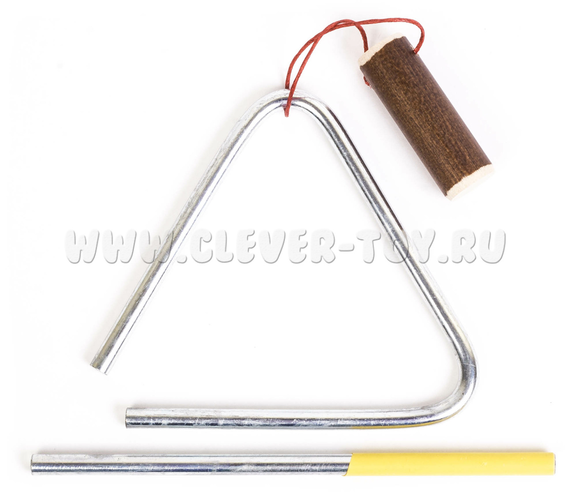 Треугольник выполнен из стали диаметром 6мм, длина стороны - 10см. Гальваническое покрытие не ухудшает качество звука и не разрушается при механическом воздействии. Ударная палочка из нержавеющей стали.