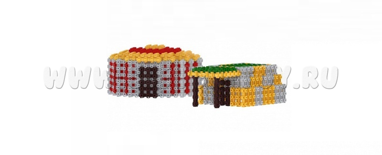 Комплект "Родной аул" (для детей 5–7 лет) предназначен для творческого конструирования жилищ и животных кочевых и полукочевых народов России: юрты, балагана, лошади, коровы, овцы.