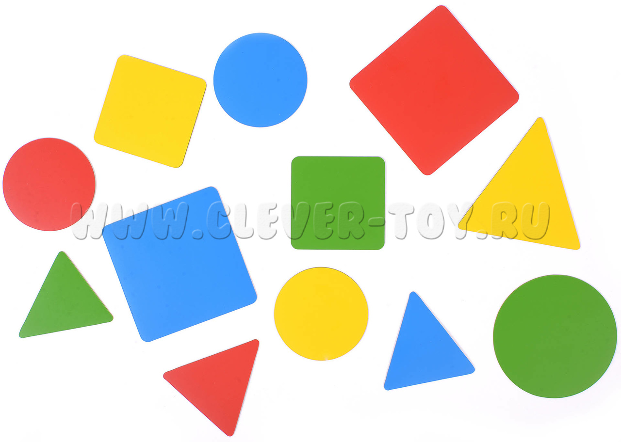 Набор магнитных карточек "Геометрические фигуры: изучаем форму, цвет, размер" (120 карточек, 4 цвета).