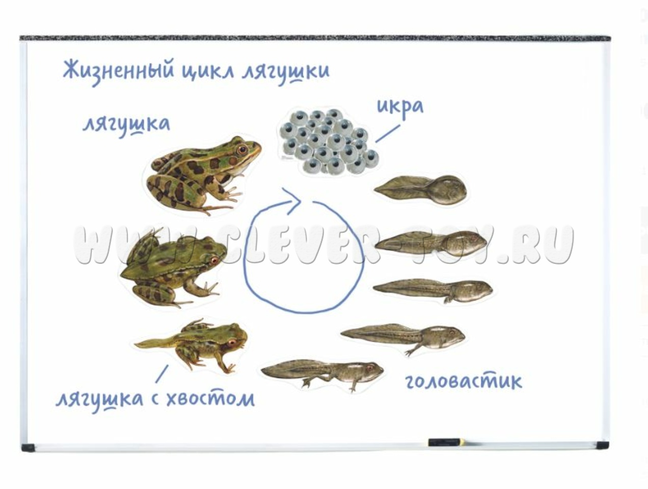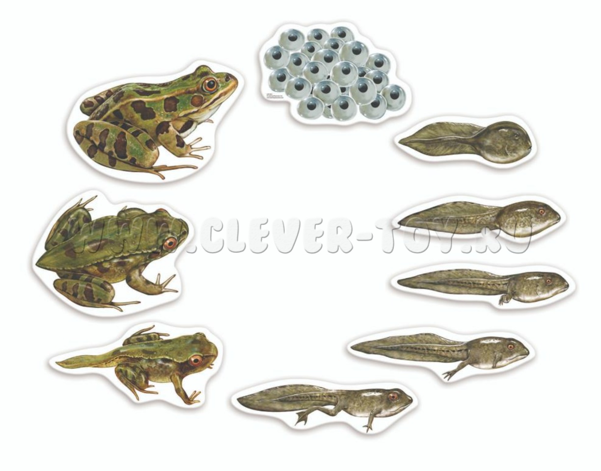 - В состав набора входят 9 магнитных детализированных иллюстраций, которые показывают различные этапы жизненного цикла лягушки.